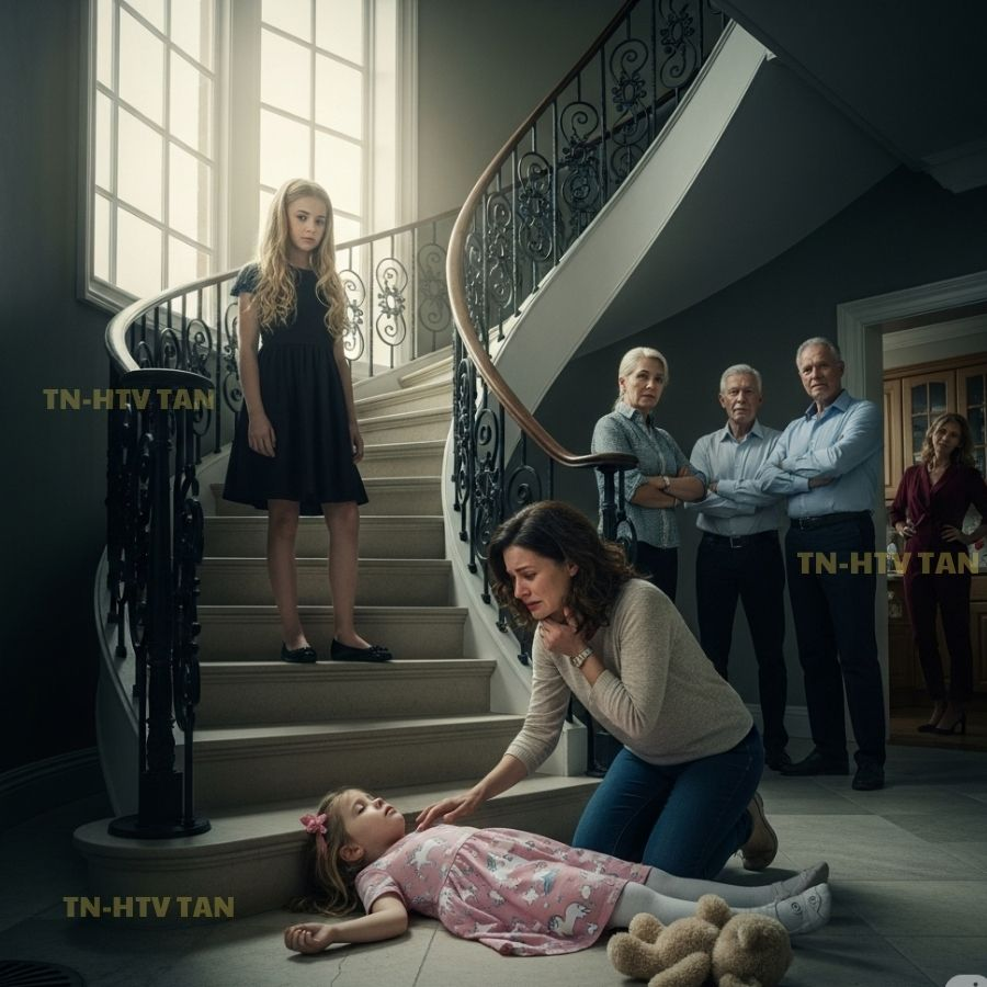 Mi sobrina empujó a mi hija de 4 años por las escaleras, diciendo que era molesta — mi hermana solo se rió, mi mamá lo desestimó, y mi papá dijo que los niños necesitan ser fuertes. pero cuando vi a mi hija tendida inmóvil, llamé al 911. No esperaban lo que haría a continuación. ![]()