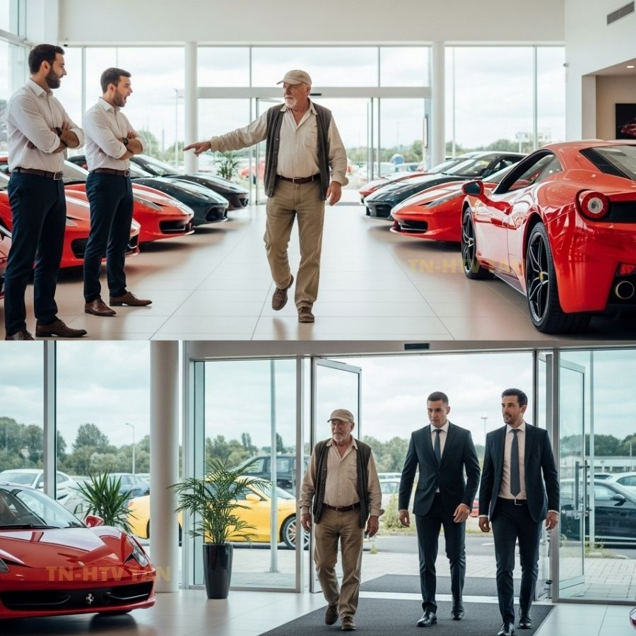 UN MILLONARIO ANCIANO FUE ECHADO DE UN CONCESIONARIO DE LUJO POR SU VESTIMENTA… MINUTOS DESPUÉS…