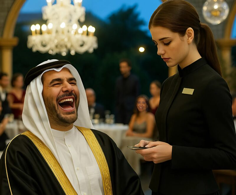Al terminar la cena, el jeque dejó una generosa propina. Pero no se detuvo ahí: se levantó, rodeó la mesa y se acercó personalmente a la camarera.