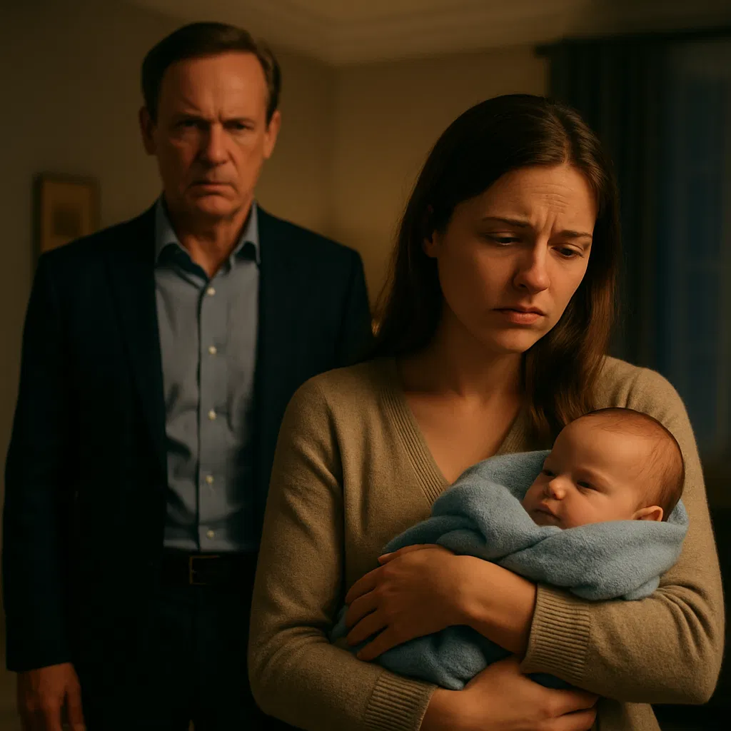 La voz de David Carter era como hielo en el momento en que Emily entró en su casa, acunando a un pequeño bebé recién nacido envuelto en una suave manta azul.