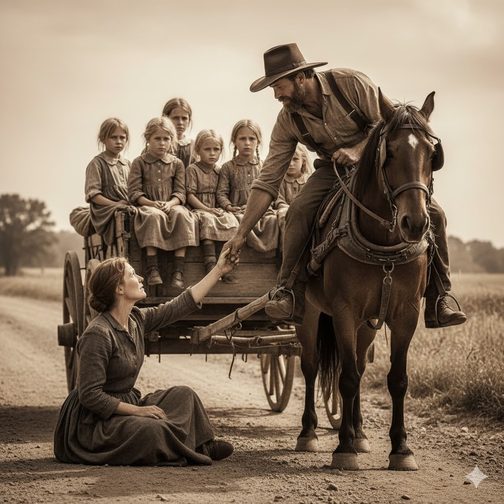 Mariana lo miró un instante que pareció eterno. Luego, con un suspiro resignado, aceptó la mano y subió a la carreta. Las niñas la observaron en silencio, cada una con un brillo distinto en los ojos. La más pequeña se acurrucó en su regazo sin pedir permiso, y Mariana sintió por primera vez en mucho tiempo una tibieza inesperada en el pecho.